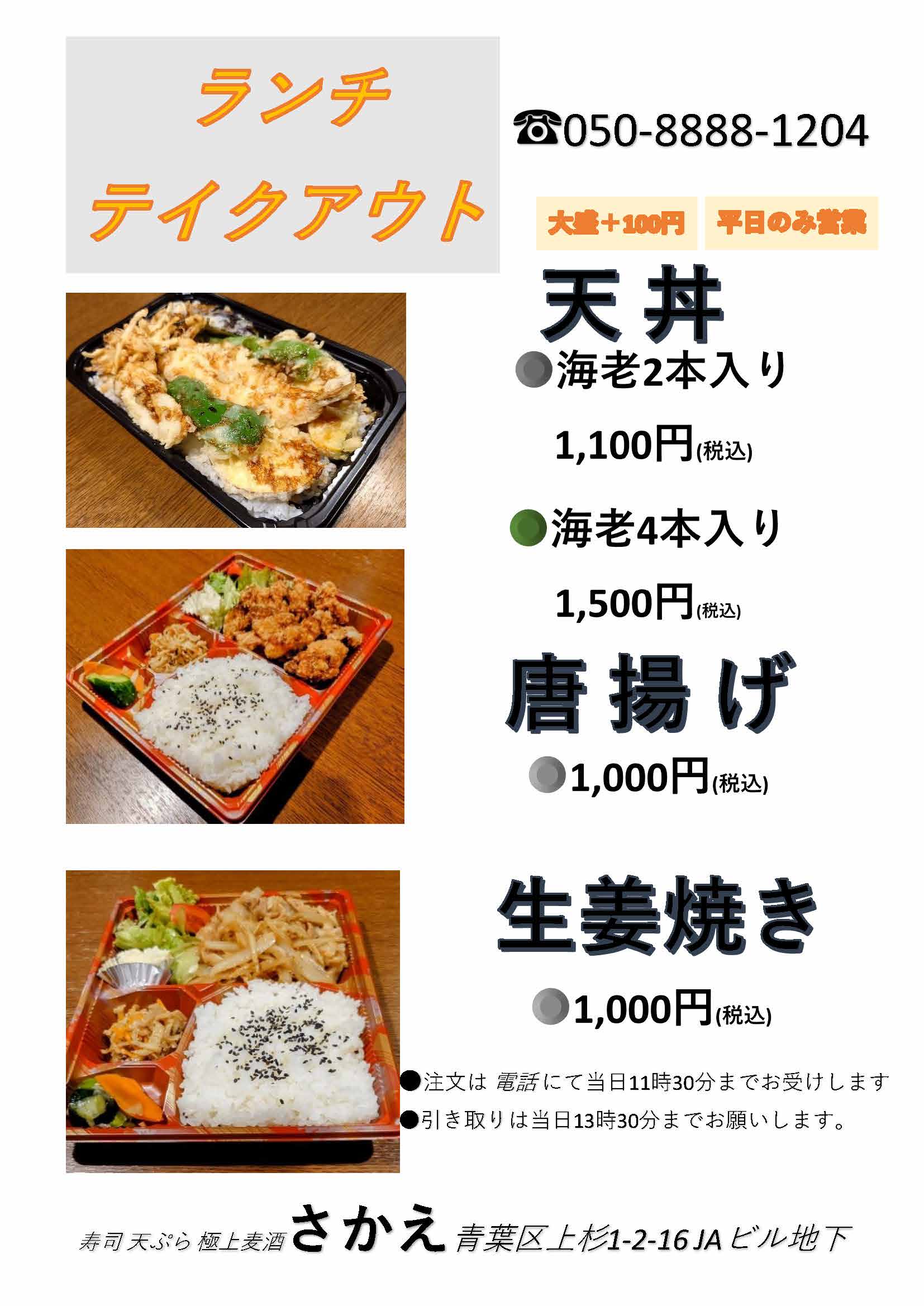 さかえの味をご自宅やオフィスでも!人気のランチをお持ち帰りいただけます。ご予約も承っております。
